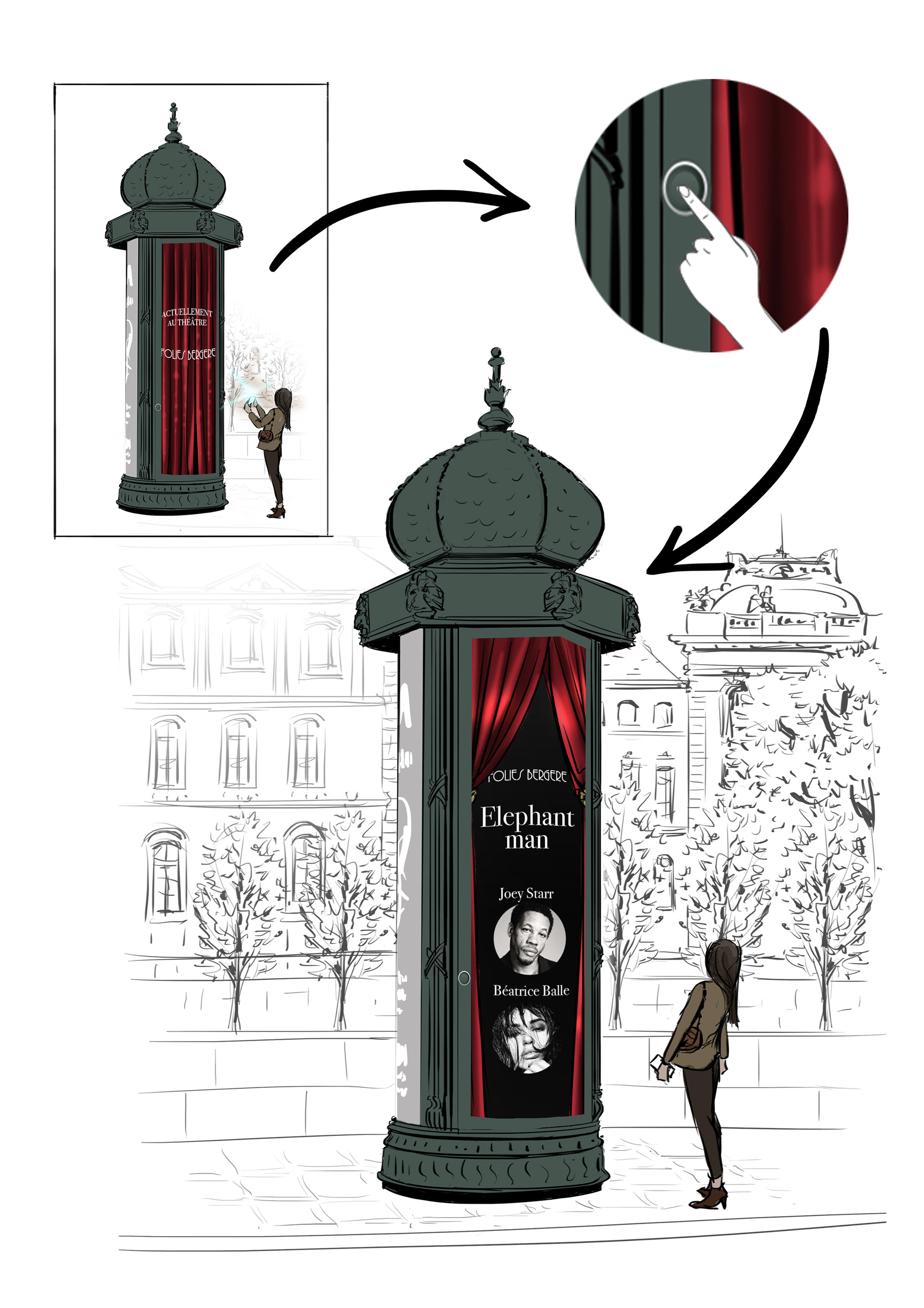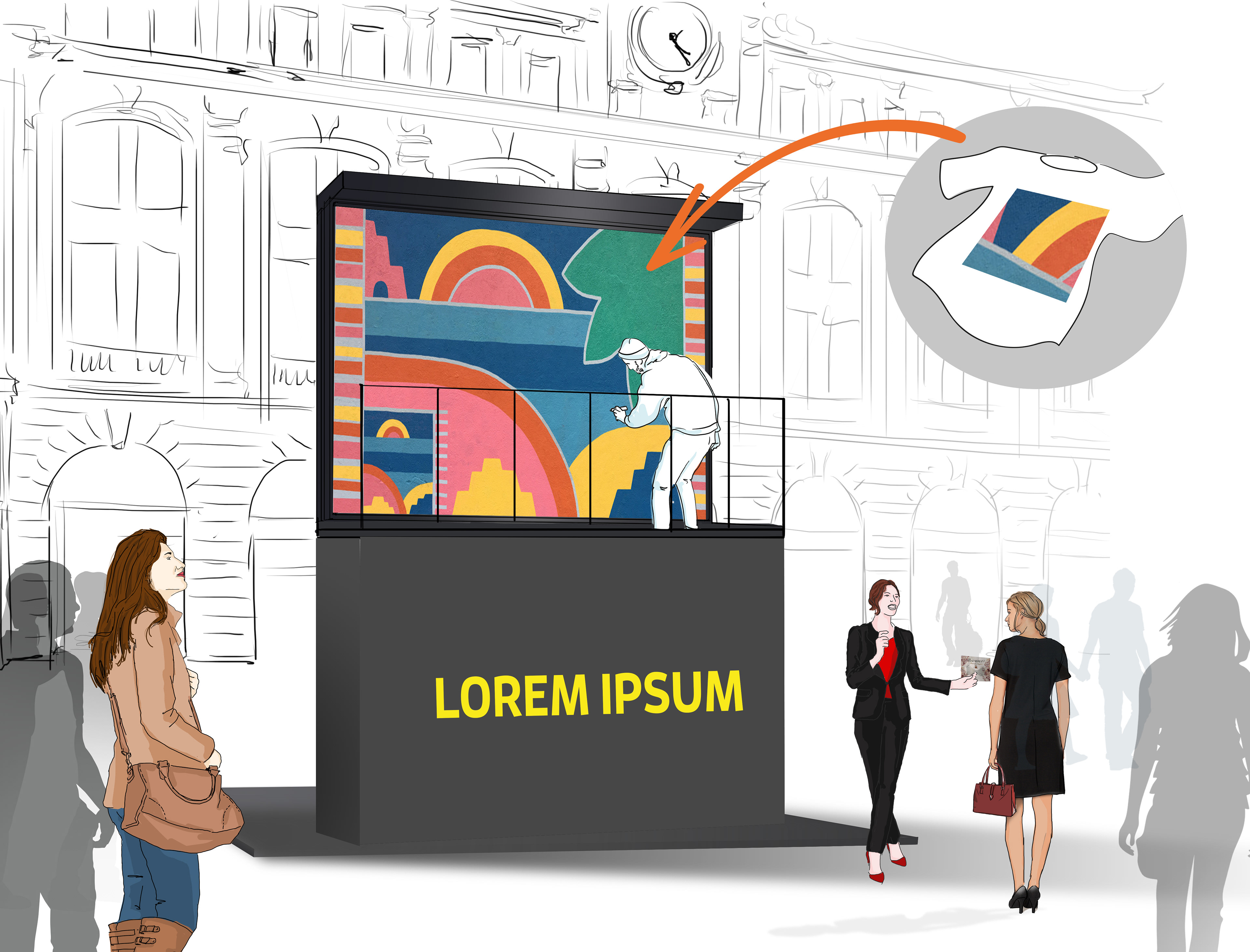 Concepts proposés à différents clients et illustré au sein de l'agence La Rue (intégré à JCDecaux)